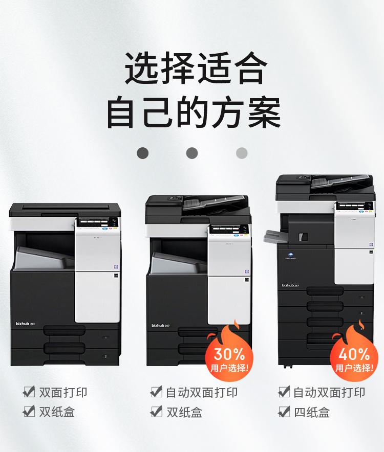 柯尼卡美能达 bizhub 287 A3黑白多功能复合机一体机(双面输稿器+落地式四纸盒+底柜)