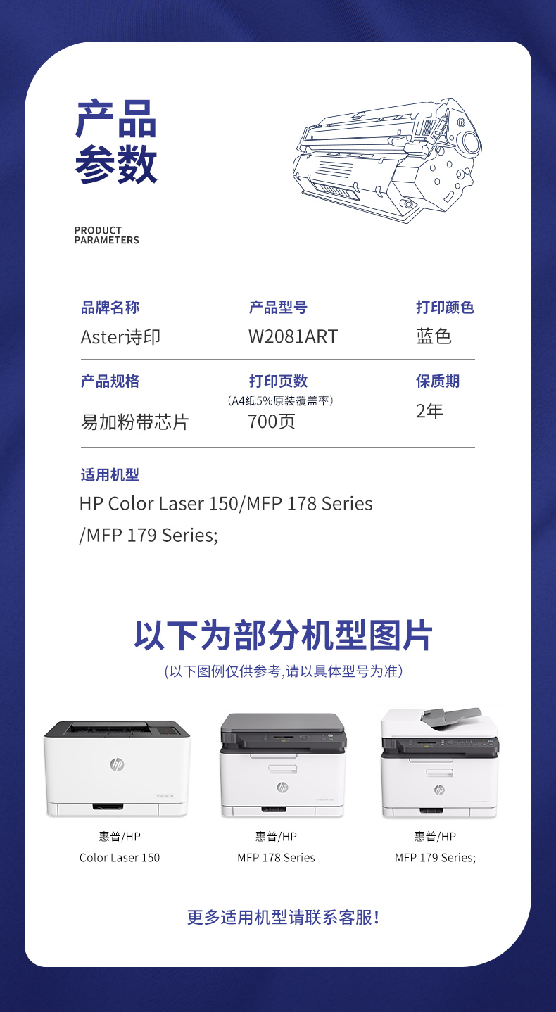 ASTER诗印 政企版W2081ART带芯片易加粉蓝色硒鼓 适用惠普hp118a MFP178 Series粉盒MFP179 Laser150打印机