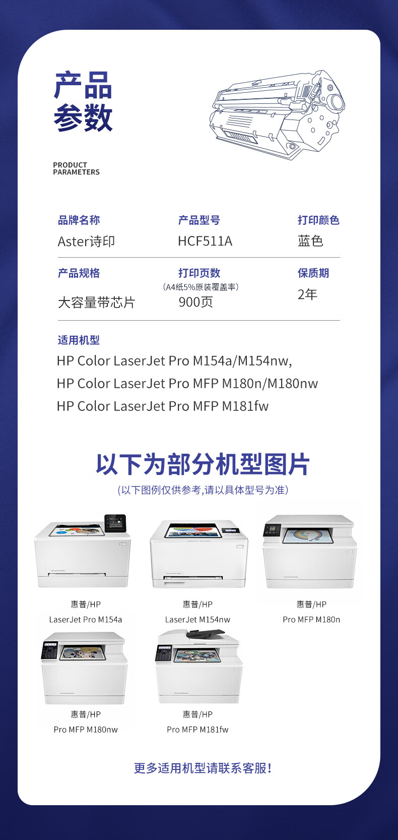 ASTER诗印 红头文件政企版HCF511A蓝色硒鼓 适用惠普204a M154a M154nw M180n M180nw M180nw M181fw粉盒