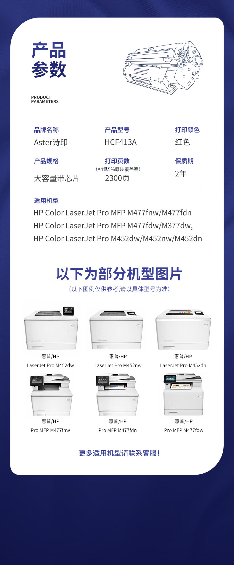 适用机型 :   HP Color LaserJet Pro MFP M477fnw/M477fdn/M477fdw/M377dw, HP Color LaserJet Pro M452dw/M452nw/M452dn