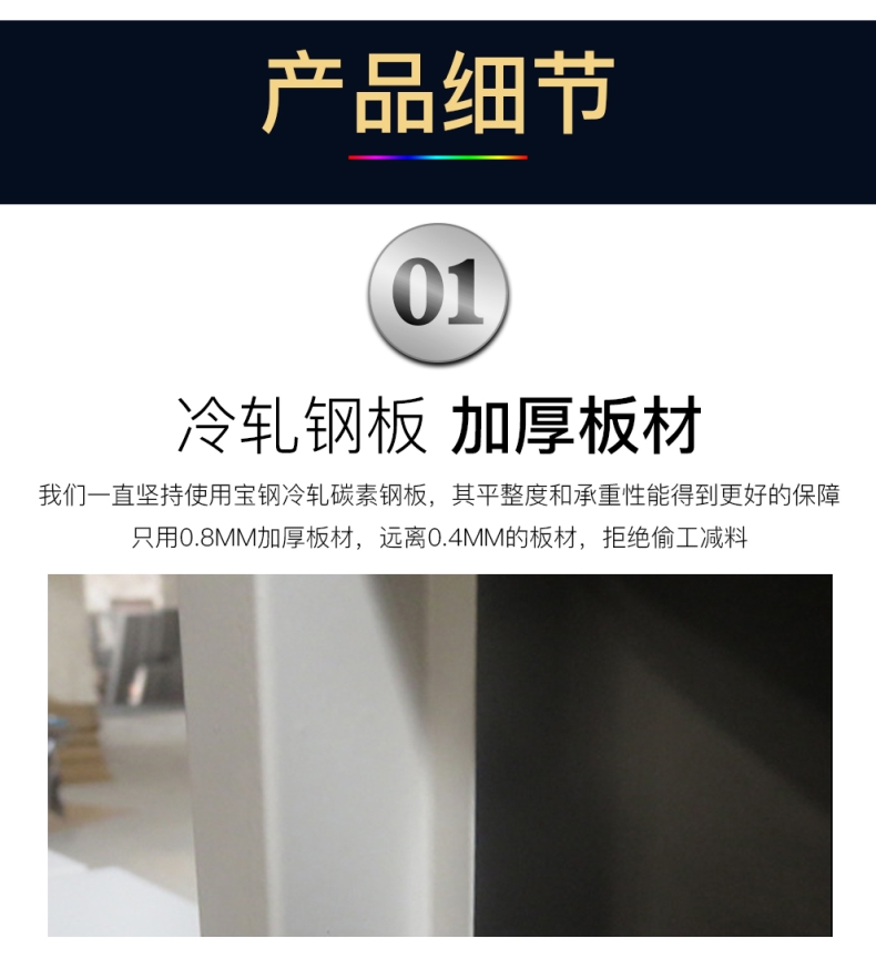 产品材质 :   材质采用优质冷轧钢,表面经静电喷粉处理,具有防锈、防酸、防潮功能;全阔抽手设计,线条简洁;优质五金配件。