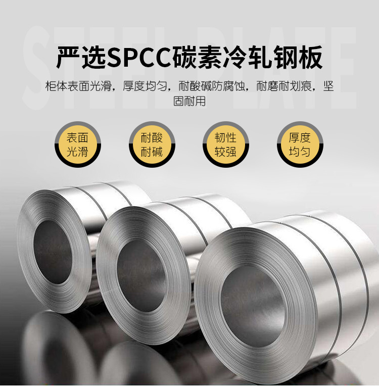 产品材质 :   材质采用优质冷轧钢,表面经静电喷粉处理,具有防锈、防酸、防潮功能;全阔抽手设计,线条简洁;优质五金配件