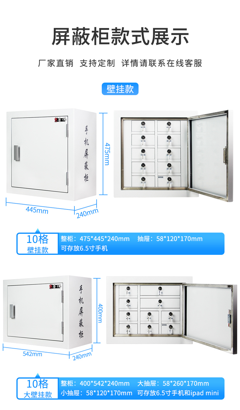 手机屏蔽柜10格大壁挂款会议室5G信号屏蔽柜400*542*240