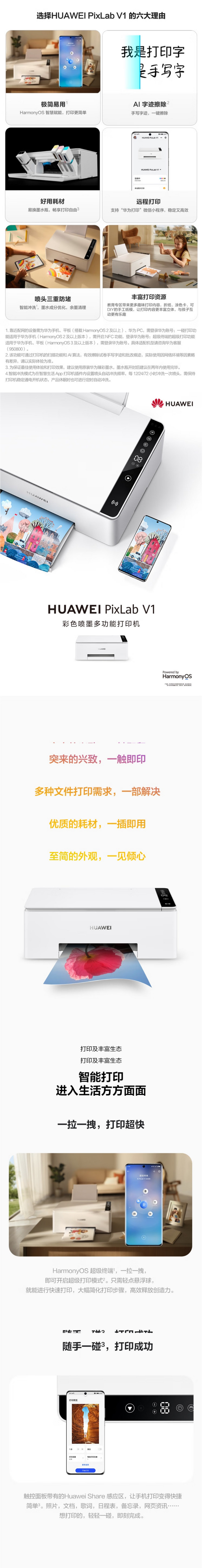 | 包装清单 | 华为(HUAWEI)PixLab V1 彩色喷墨多功能打印一体机 |
