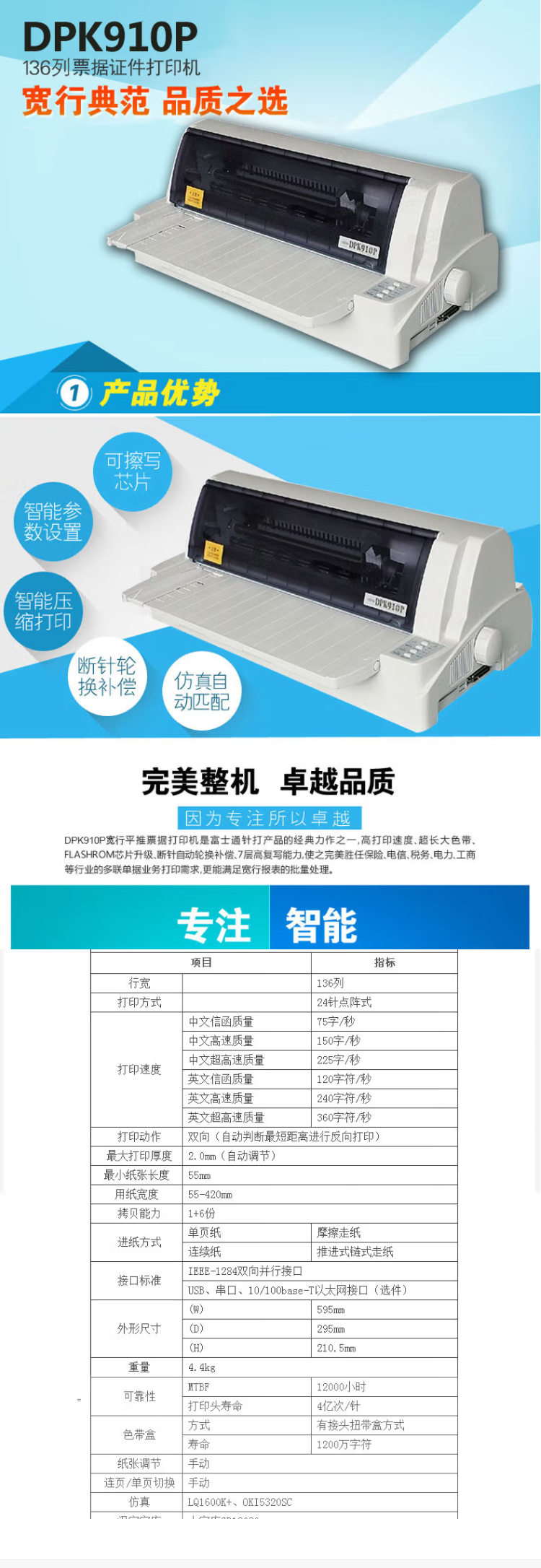 富士通 FUJITSU 136列平推式针式打印机 DPK910P