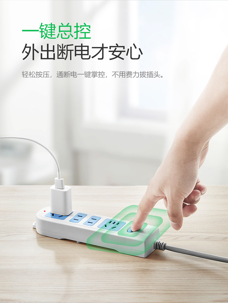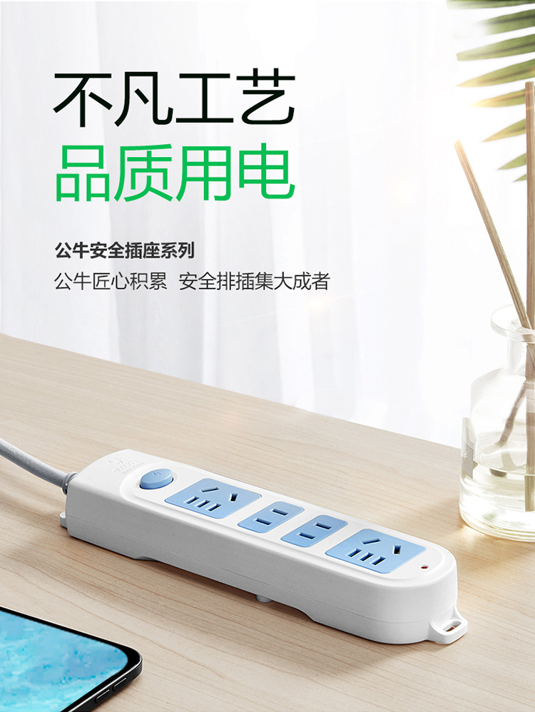 公牛(BULL) 新国标插座/插线板/插排/排插/接线板/拖线板 GN-607 4位总控全长4米