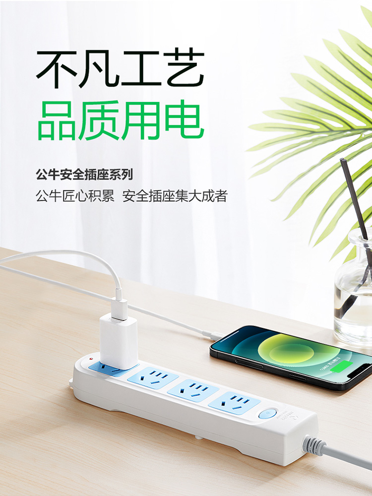 公牛(BULL) 新国标插座/插线板/插排/排插/接线板/拖线板 4位总控全长3米 GN-601