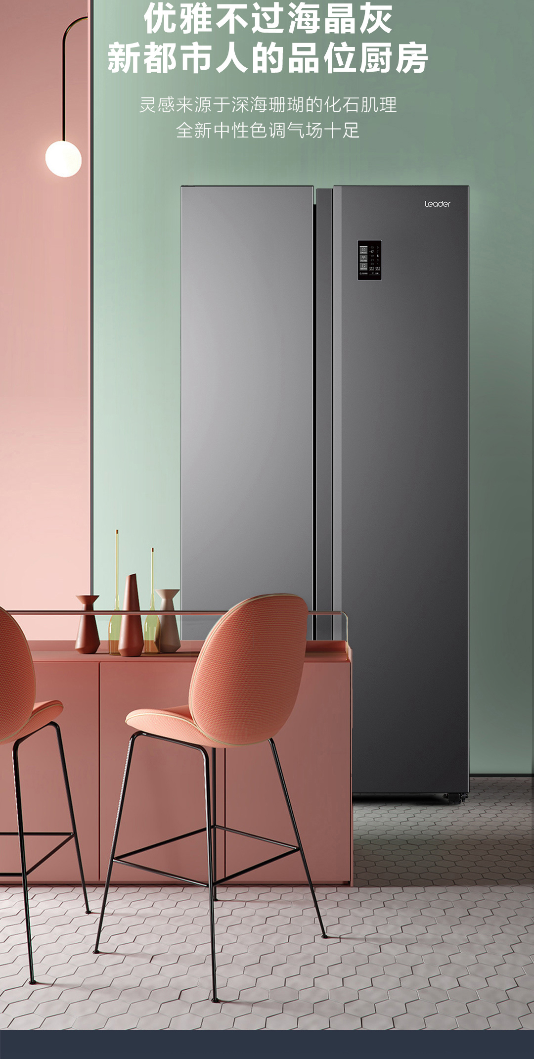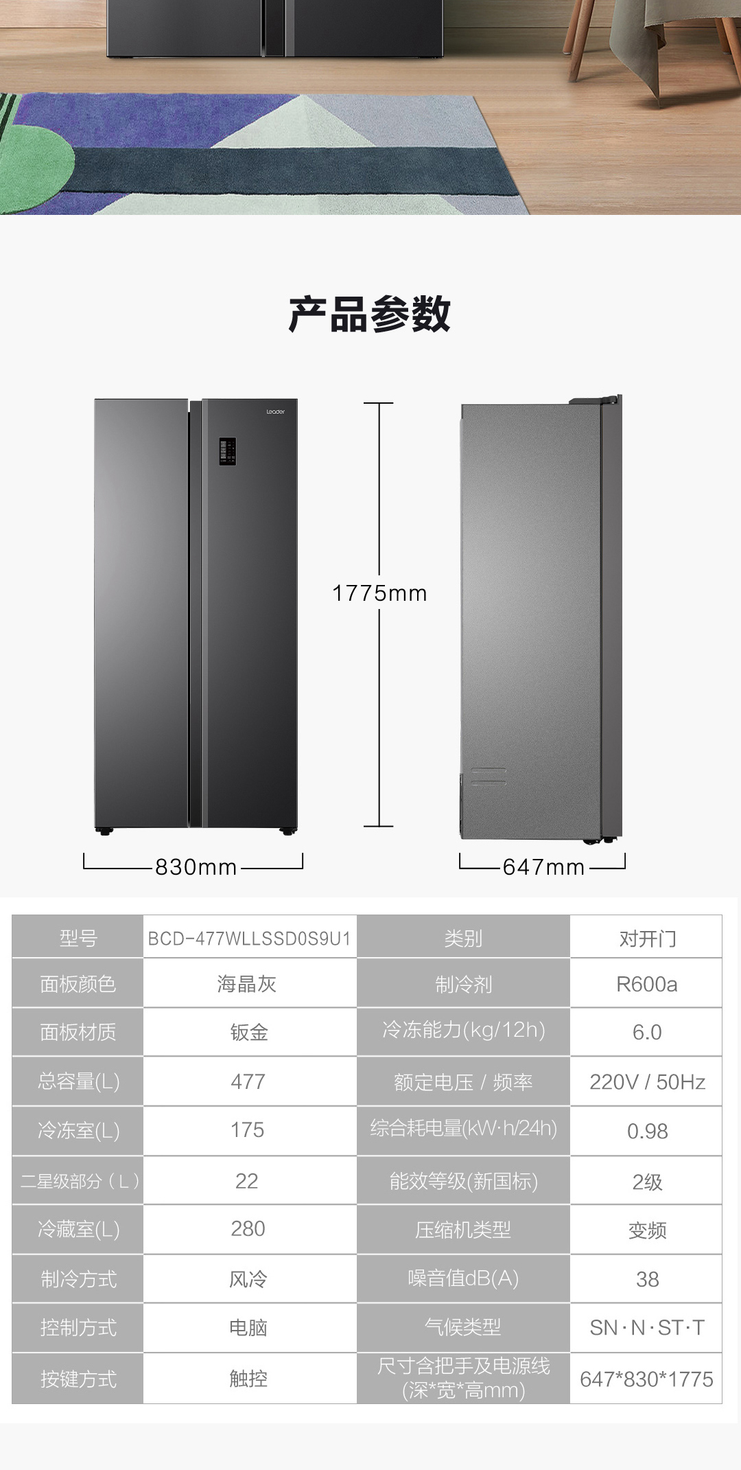Leader统帅477升大容量风冷无霜对开门双开门超薄嵌入式变频冰箱海尔智家电冰箱BCD-477WLLSSD0S9U1