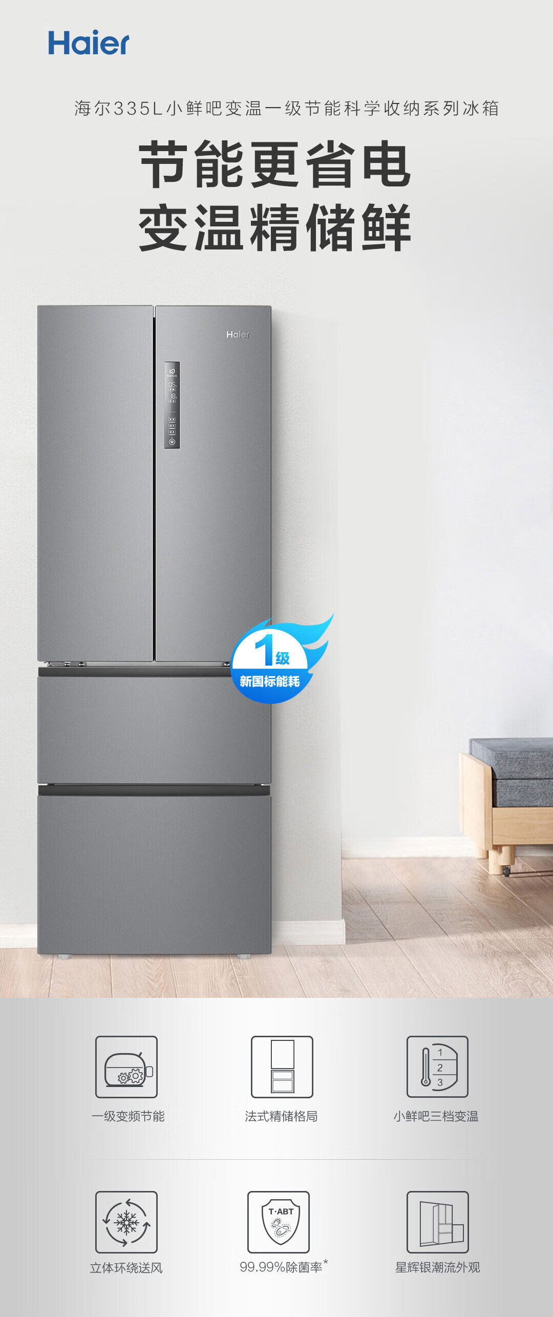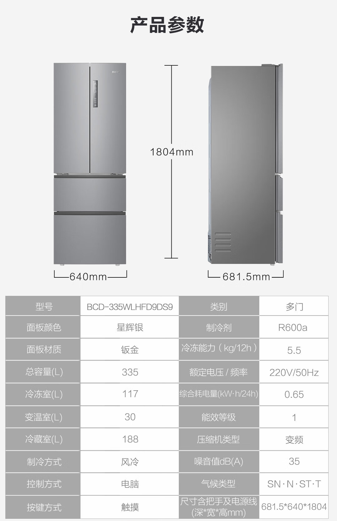 商品品牌:海尔/Haier 商品货号:BCD-335WLHFD9DS9 商品库存:59