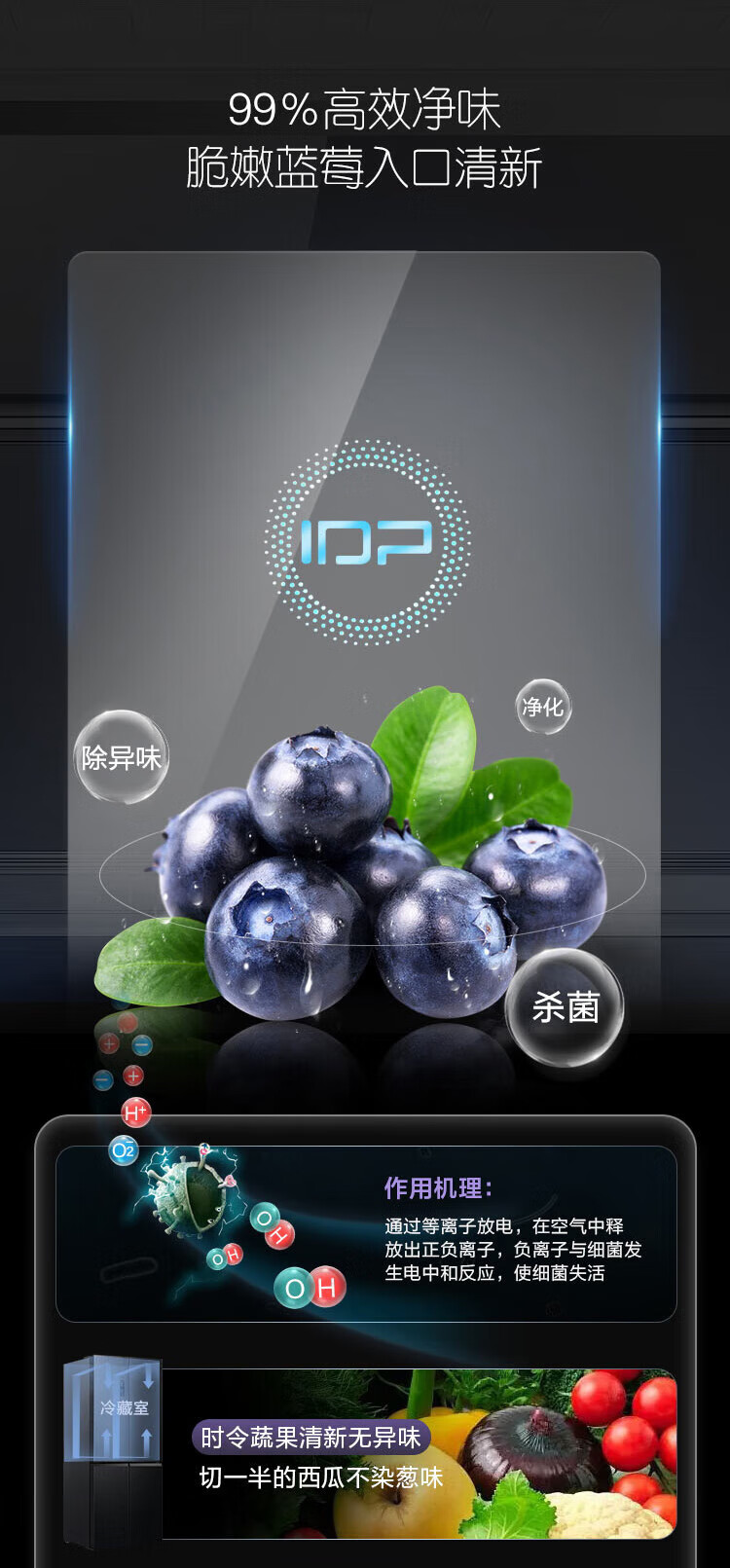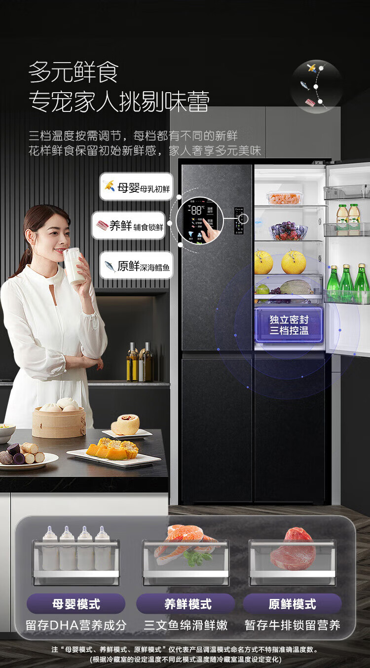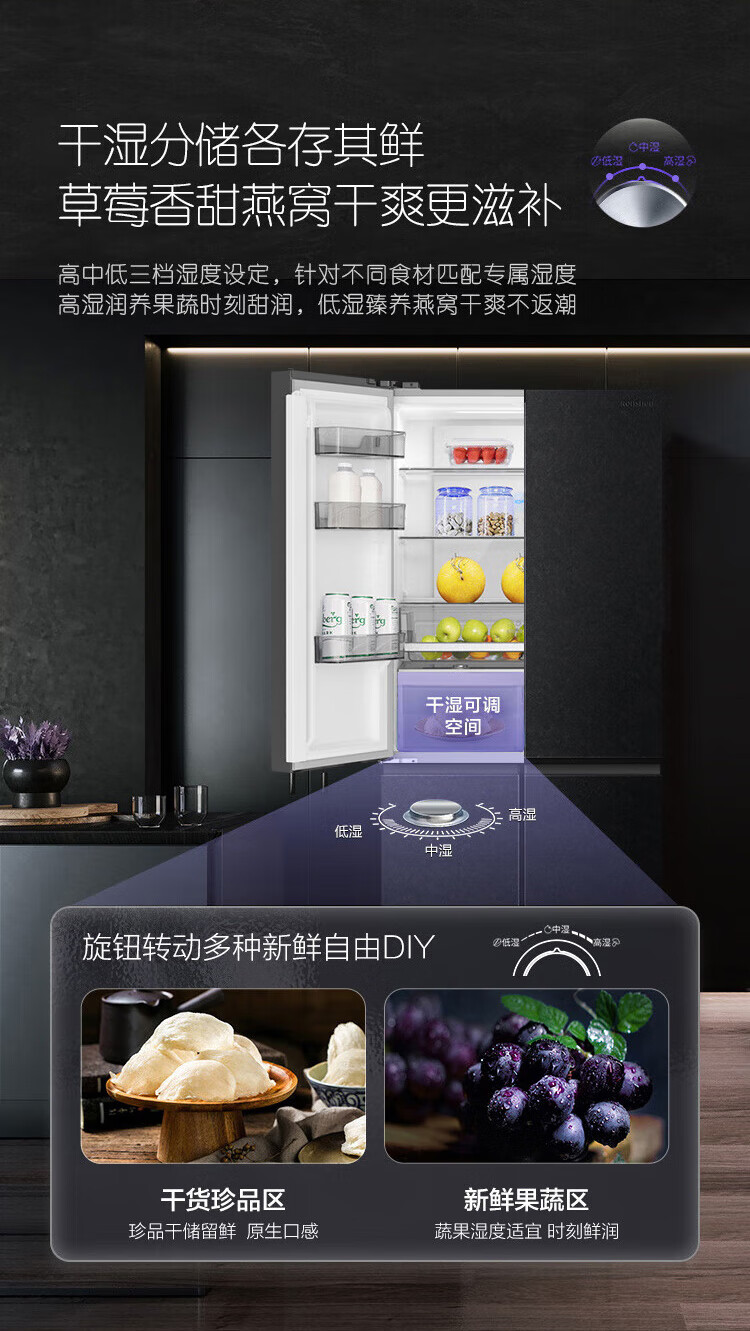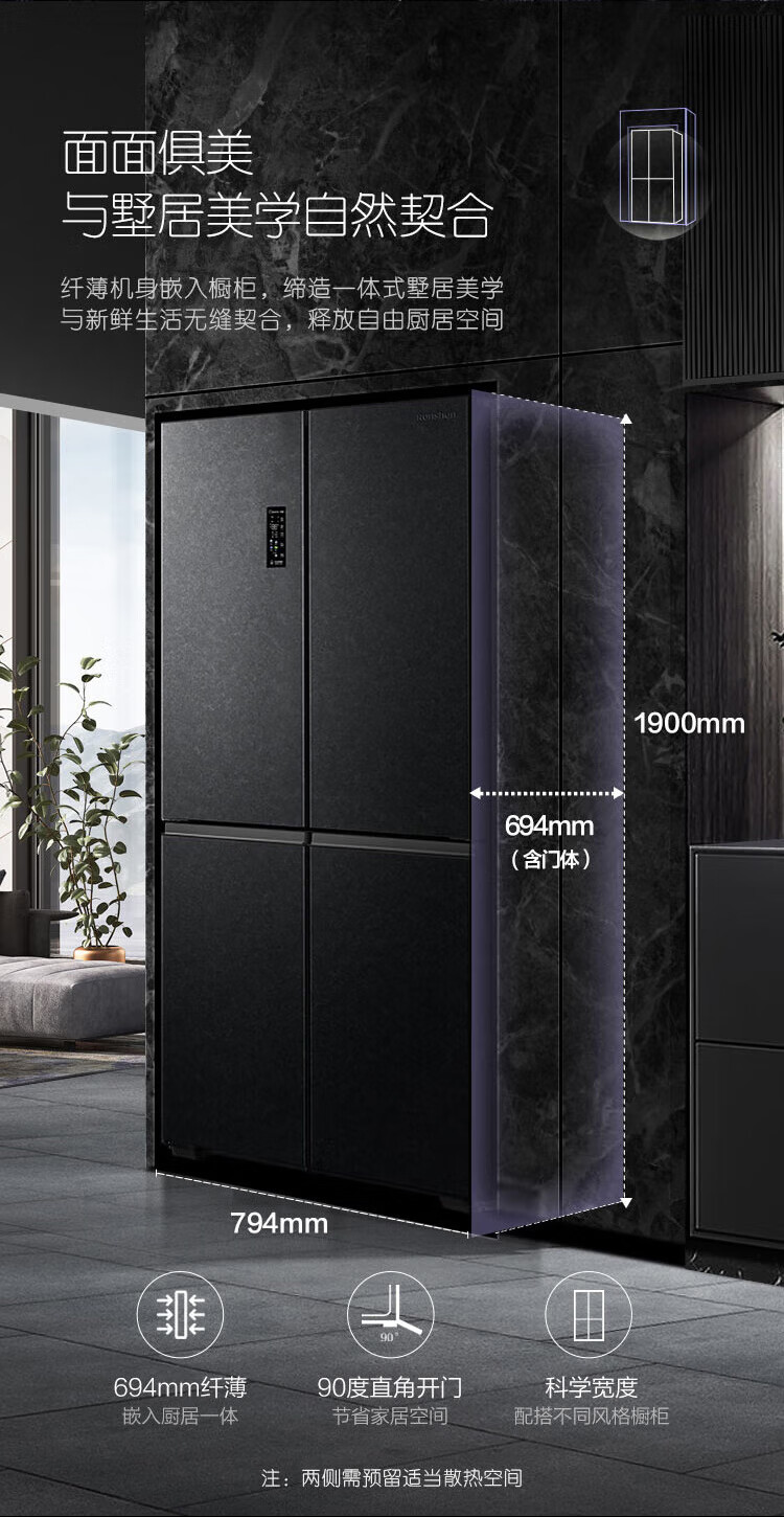 容声(Ronshen)双净原鲜516升变频一级能效十字对开门四开门冰箱无霜双循环BCD-516WD16FP主动除菌