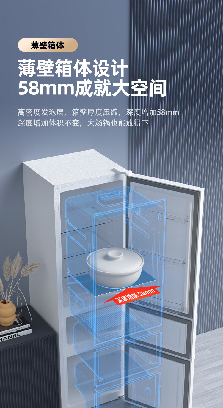 康佳210升三门小型电冰箱三开门三温区中门软冷冻 节能省电低噪超薄 BCD-210GB3S