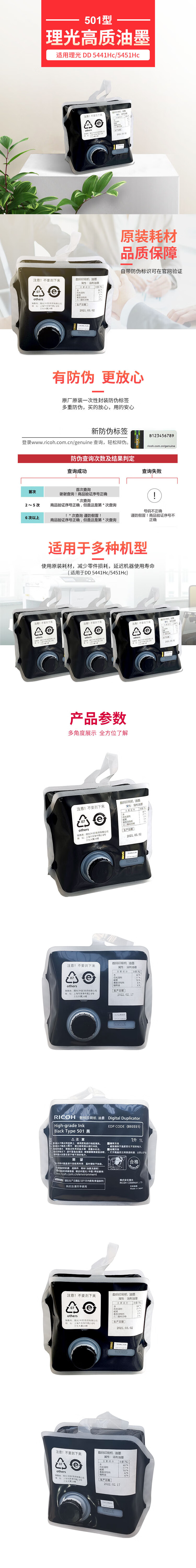 理光(Ricoh)501型 高质黑油墨(1000cc/袋*1袋)适用于DD 5441Hc/DD 5451Hc