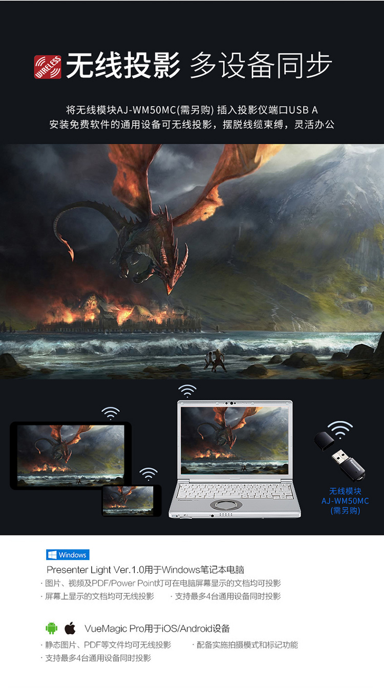 安装方式 :   桌上正投;吊装正投;吊装背投;桌上背投;360度投影