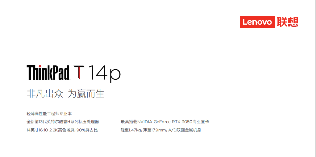 商品品牌:ThinkPad 商品货号:联想 ThinkPad T14p 商品库存:10