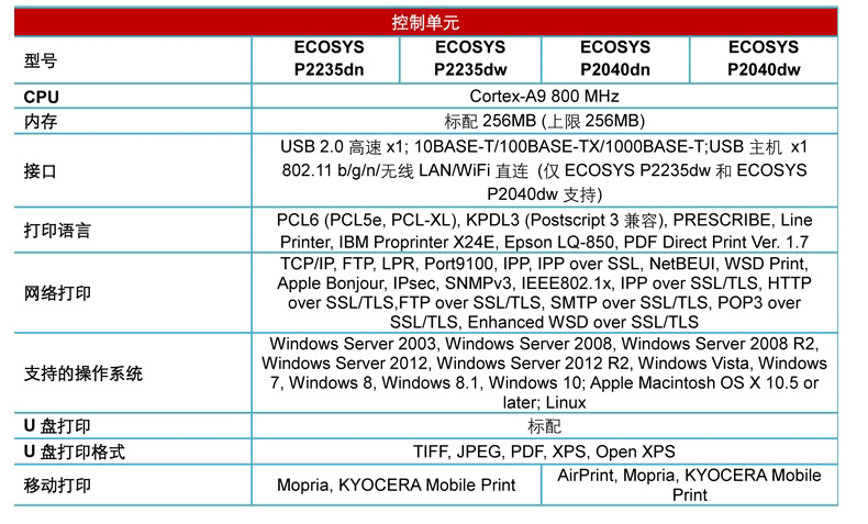 名称 :   京瓷 P2040dn A4黑白激光打印机 双面 网络打印(单位:台)
