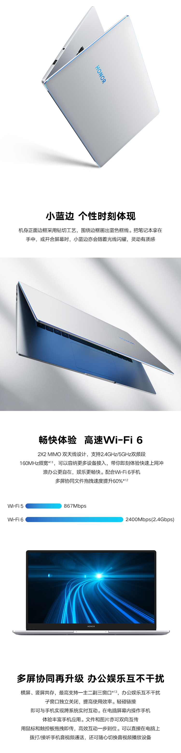 荣耀笔记本电脑 MagicBook 15 2021 15.6英寸全面屏/多屏协同轻薄本(11代酷睿i5 1135G7 16GB 512GB MX450)银