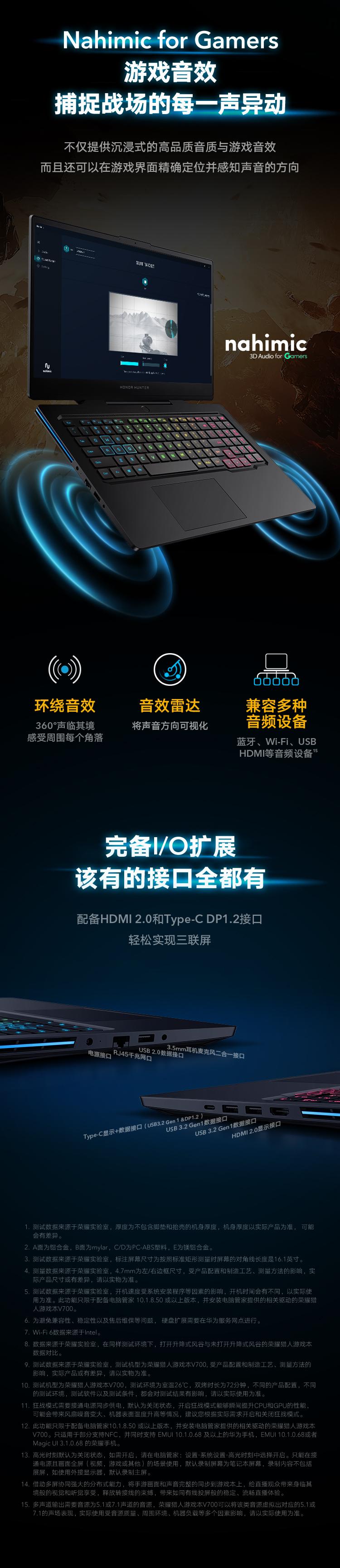 荣耀猎人HONOR HUNTER V700 16.1英寸游戏笔记本电脑(i7-10750H 16G 512G RTX2060 144Hz 100%sRGB)幻夜黑