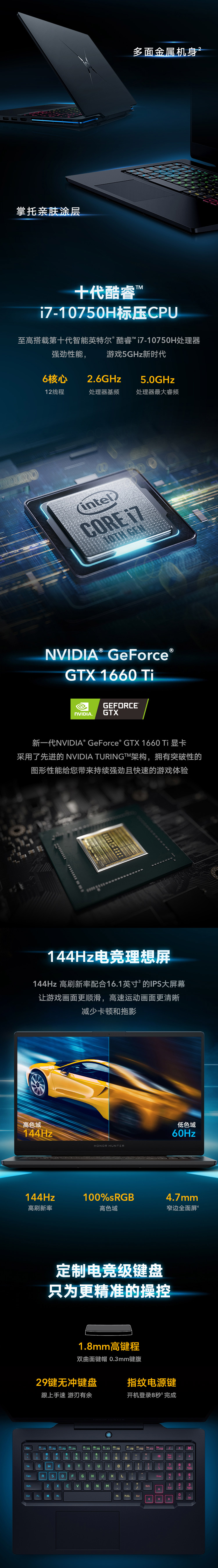 荣耀猎人HONOR HUNTER V700 16.1英寸游戏笔记本电脑(i7-10750H 16G 512G GTX1660Ti 144Hz 100%sRGB)幻夜黑