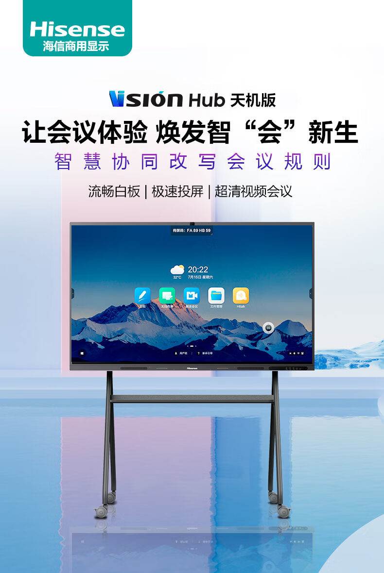 海信 会议平板一 体机 投屏触摸电子白板教学一体机内置摄像头低蓝光 86英寸 双系统 附商务支架+投屏器 包安装