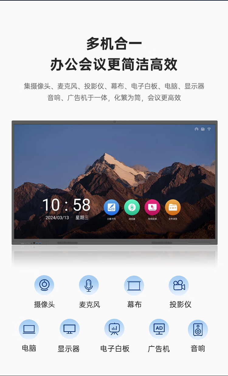 Newline鸿合 会议平板视频一体机教学腾讯会议触摸摄像头电子白板办公 内含摄像头 4K屏幕 65英寸 尊享版 安卓系统 附移动支架+笔+遥控器+投屏器 包安装
