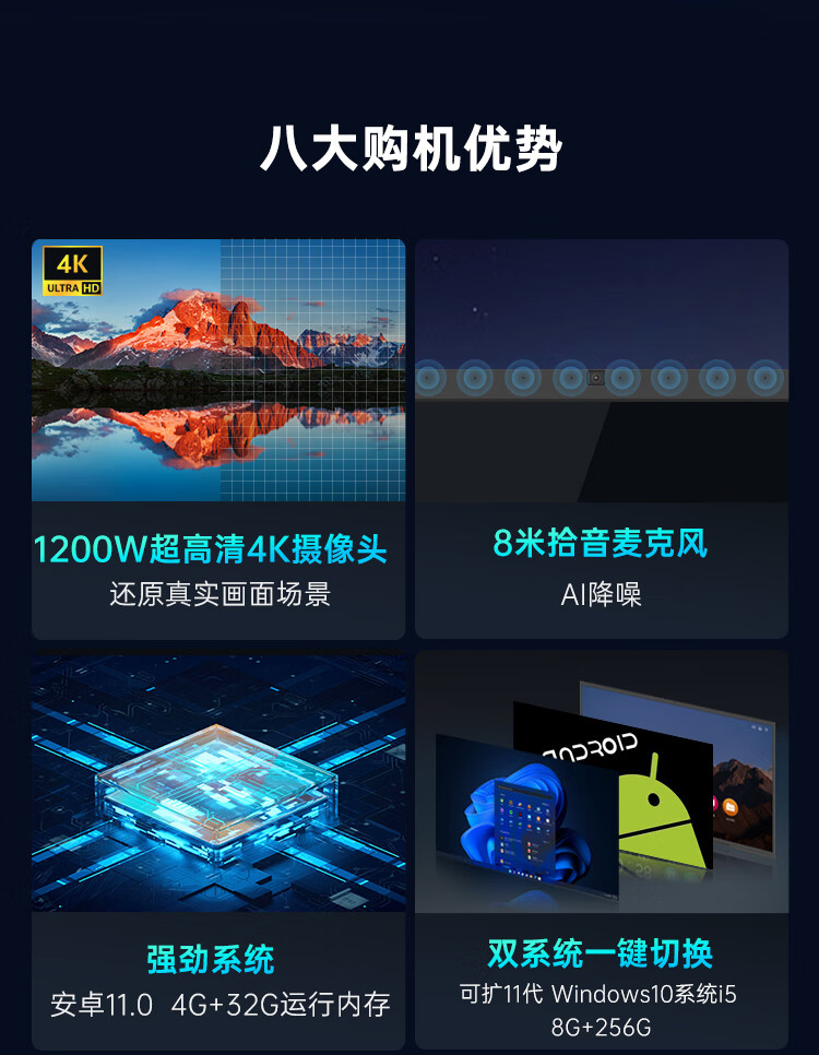 Newline鸿合 会议平板视频一体机教学腾讯会议触摸摄像头电子白板办公 内含摄像头 4K屏幕 55英寸 尊享版 安卓系统 附壁挂支架+笔+遥控器 包安装