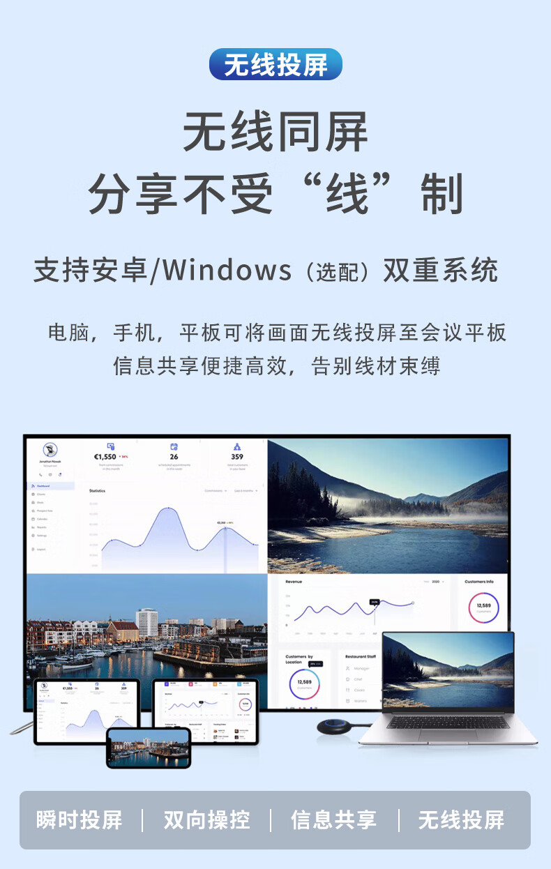 长虹(CHANGHONG)智能触屏会议平板一体机投屏电子白板视频会议显示大屏 75英寸 安卓+Win双系统 i7+8G+256G 附移动支架+传屏器+智能笔 包安装