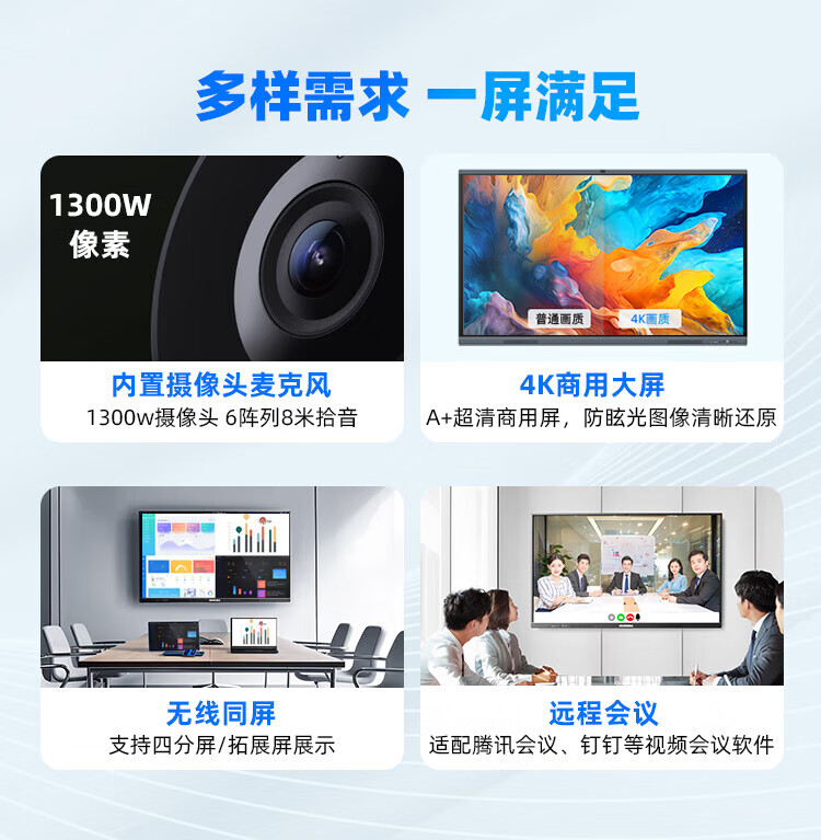 互视达(HUSHIDA) 视频会议平板一体机电子白板内置摄像头麦克风 4K屏幕 86英寸 安卓+Win系统 i5处理器 会议升级套装 包安装