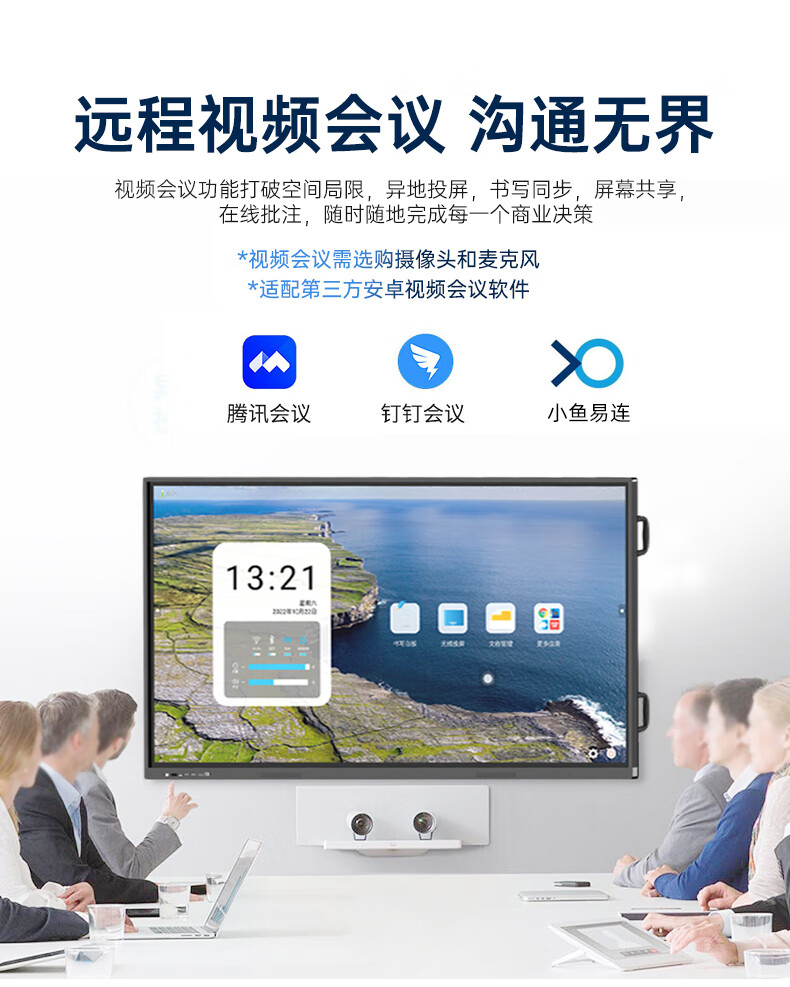 利亚德(leyard)会议平板智能触摸一体机视频触控智慧屏视频会议 内含摄像头麦克风 65英寸 安卓系统 附移动支架+手写笔*2+投屏器