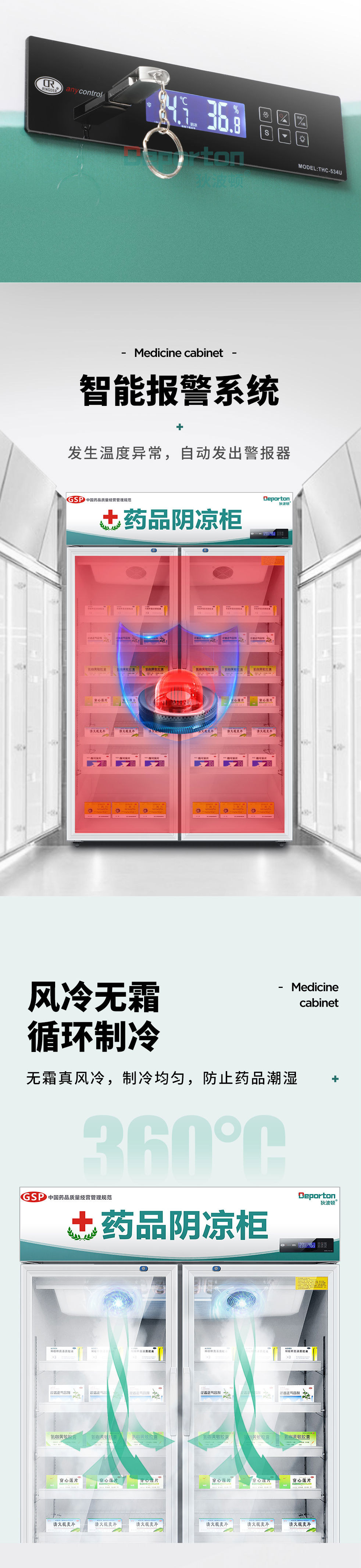 狄波顿 药品阴凉柜 冷藏柜 医院用冰箱 药店展示柜 立式冰箱 GSP认证药品柜 1200L 三门上压机 铝合金门 阴凉/冷藏双模式