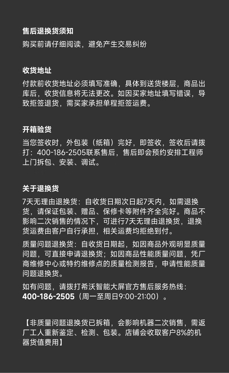 本产品全国联保,享受三包服务,质保期为:一年质保 如因质量问题或故障,凭厂商维修中心或特约维修点的质量检测证明,享受7天内退货,15日内换货,15日以上在质保期内享受免费保修等三包服务!