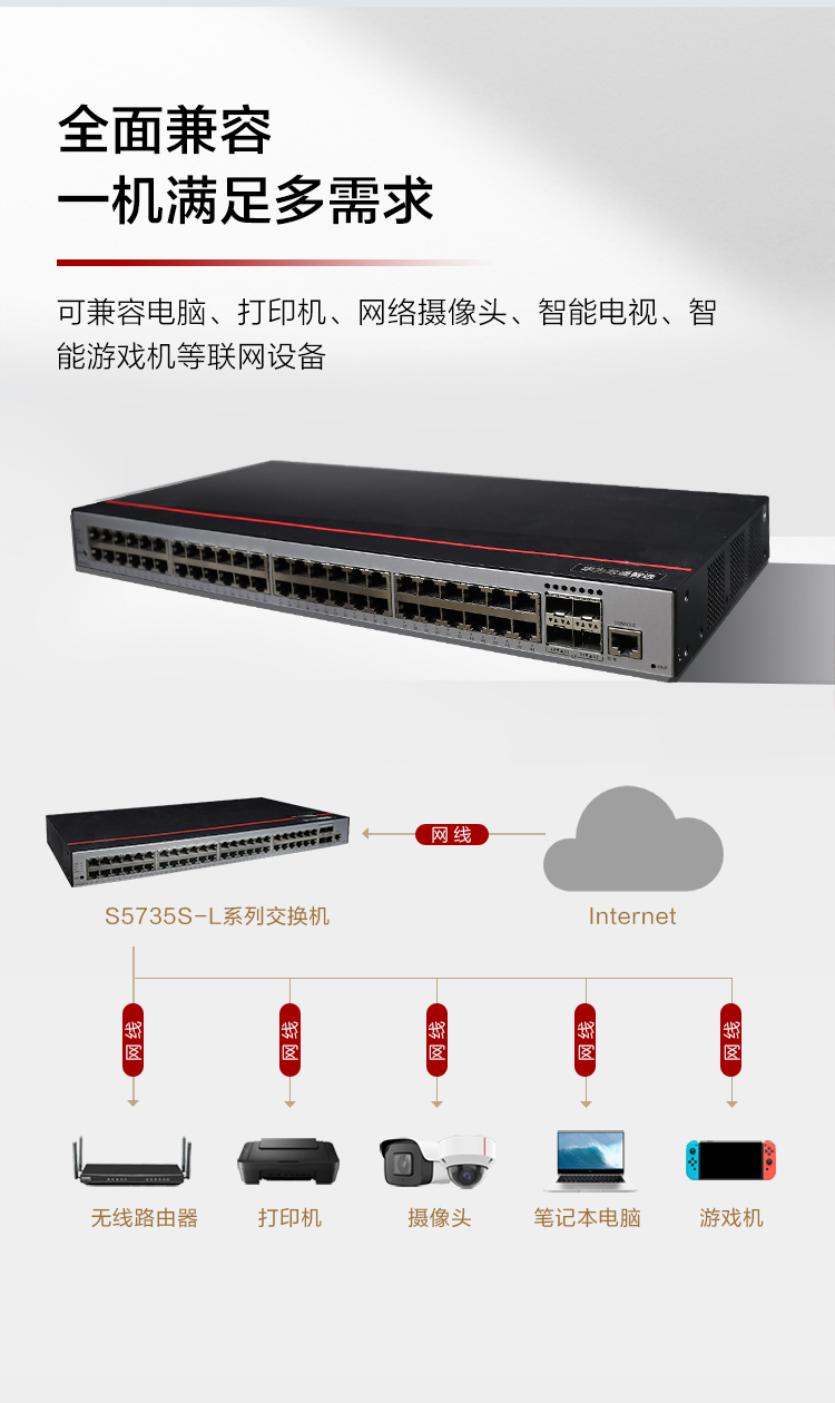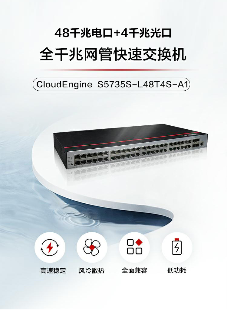 华为数通智选48口千兆交换机+4口千兆光企业级全管理弱三层 S5735S-L48T4S-A1