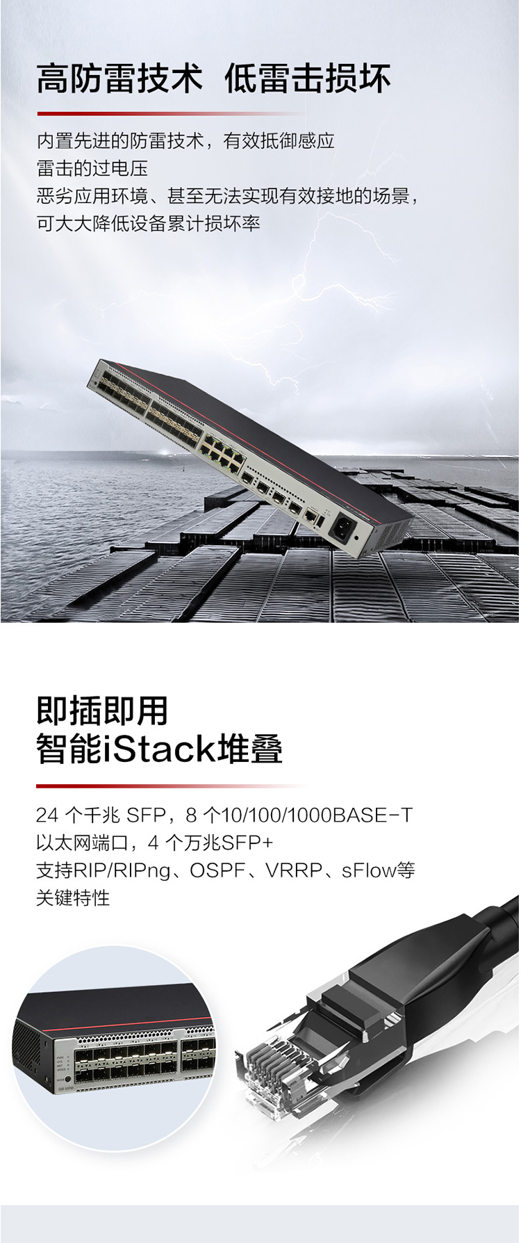 华为数通智选交换机24口千兆光口SFP+8口千兆以太网+4口万兆光口企业级网络全管理弱三层 智易S500-32ST4X