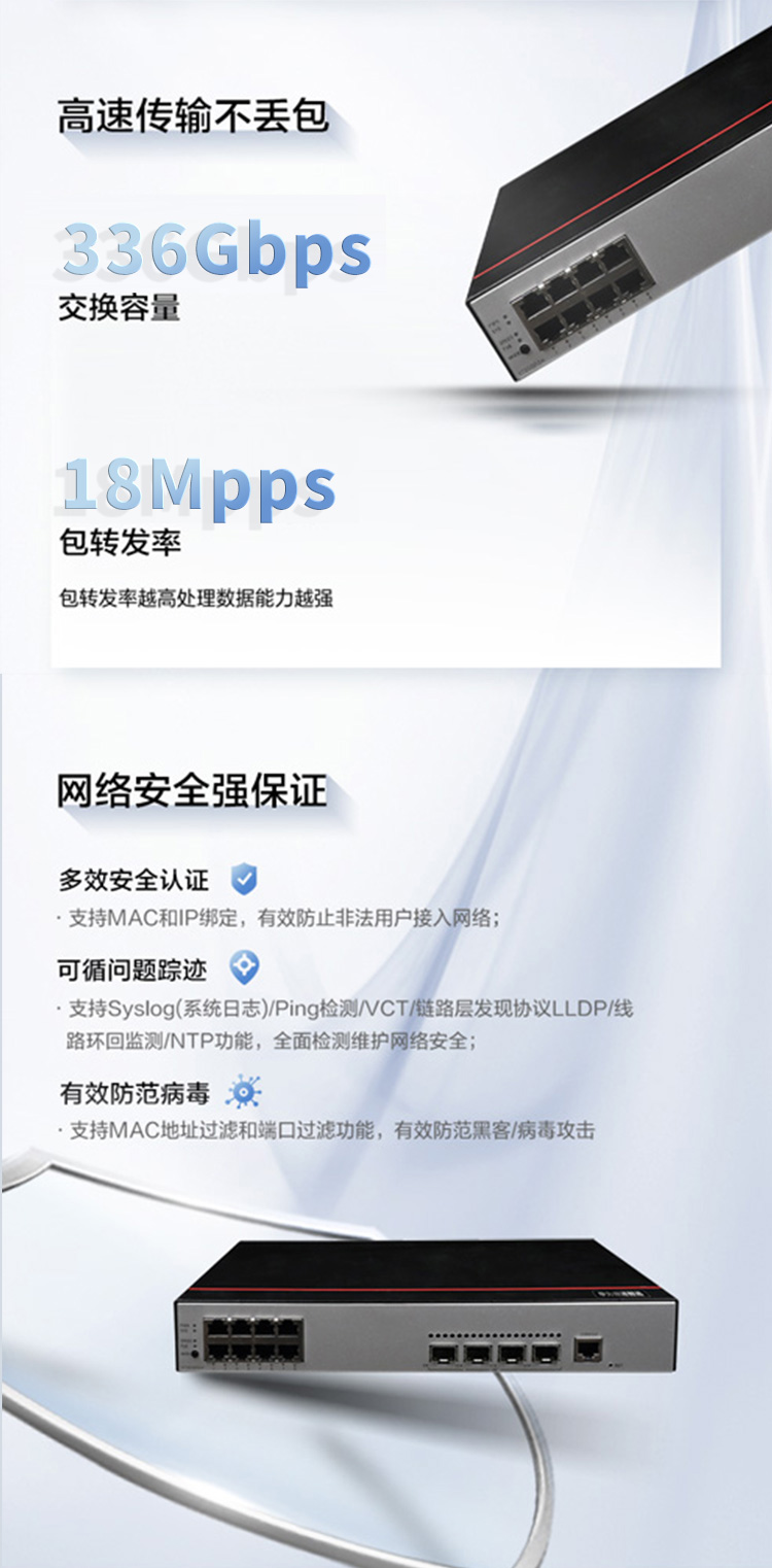 华为数通智选交换机8口千兆以太网+4口千兆光口POE供电企业级网络分流器组网桌面中小办公室S1730S-S8P4S-A1