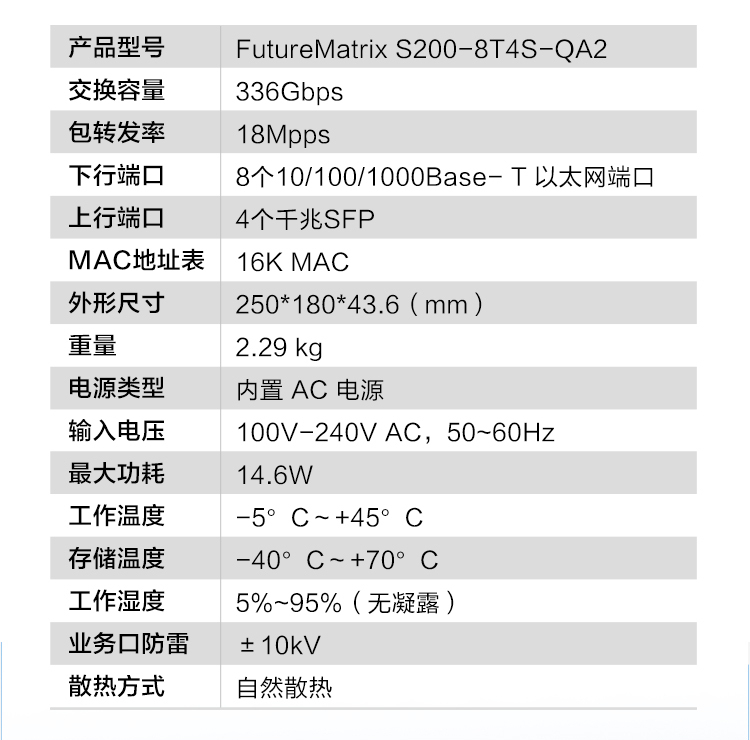 认证型号 :   FutureMatrix S200-8T4S-QA2