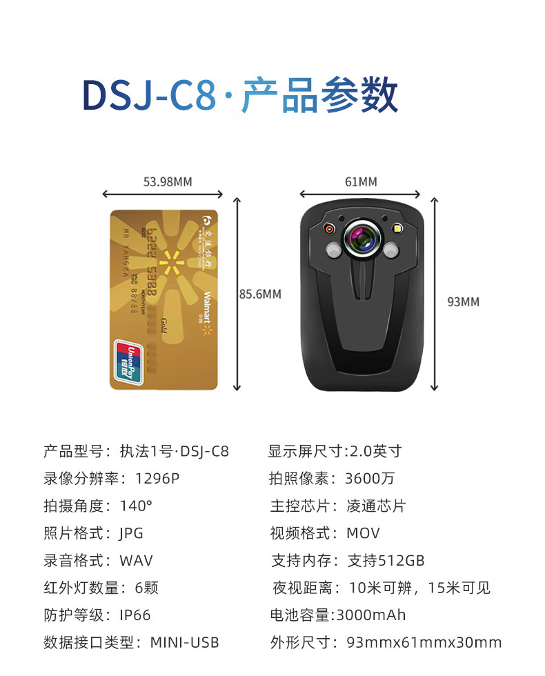 执法1号(zhifayihao)DSJ-C8 执法记录仪 1296P高清 夜视手机 直连运动 相机 WIFI版 256G