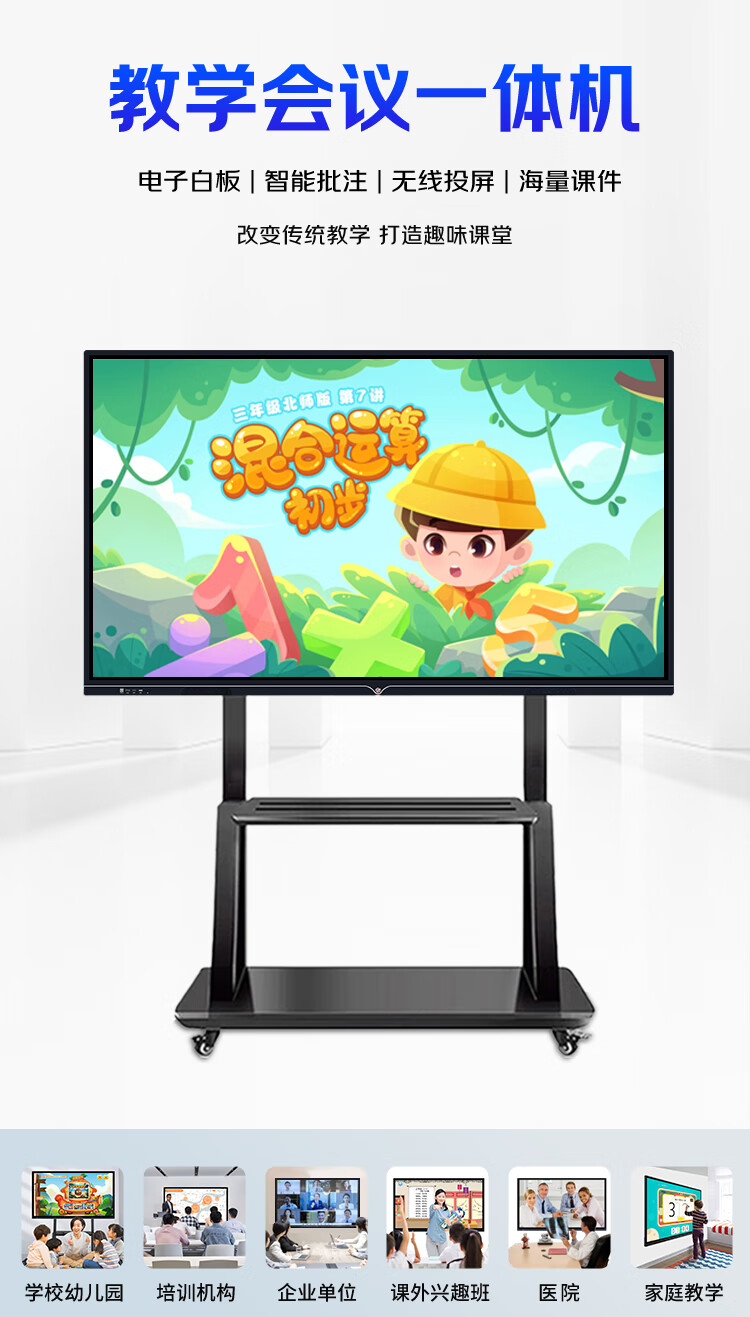 数冠(SHUGUAN)会议一体机多媒体触控屏电子白板智能无线传屏会议平板 黑色款 85英寸 安卓+Win双系统 i5+4G+128G 附壁挂支架 包安装