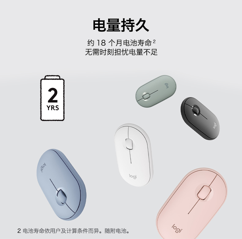 罗技(Logitech)Pebble鹅卵石 鼠标 无线蓝牙鼠标 办公鼠标 轻音鼠标 女性鼠标 便携鼠标 对称鼠标 雾霭蓝