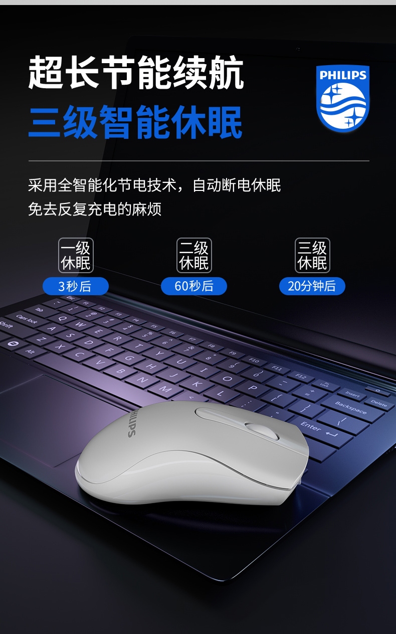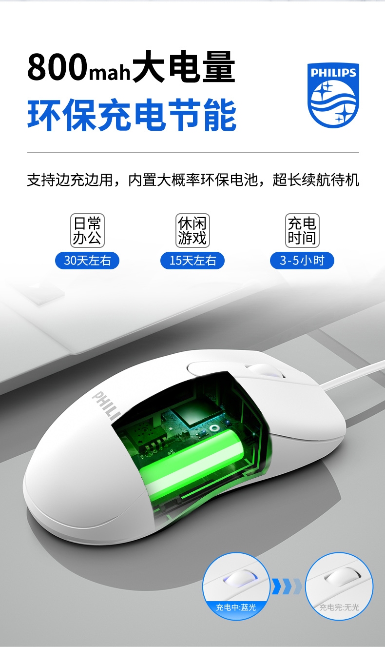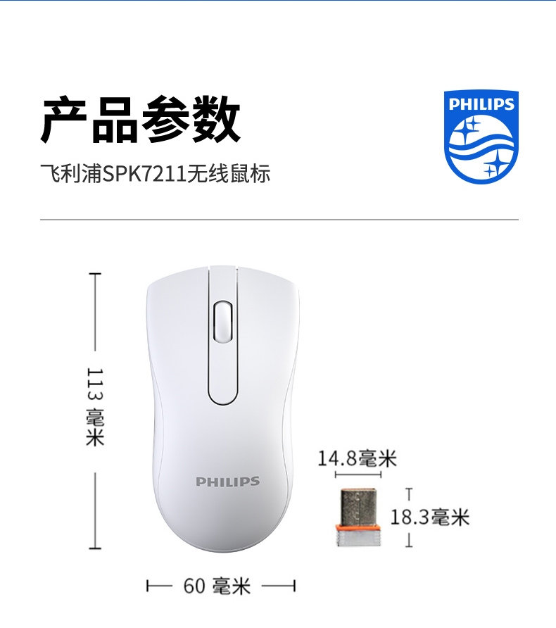 飞利浦(PHILIPS)SPK7211WSC 鼠标 无线鼠标 办公鼠标 低音鼠标 充电鼠标 人体工学 白色 十只装