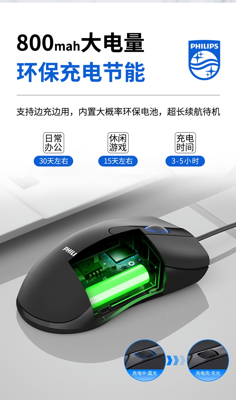 飞利浦(PHILIPS)SPK7211BSC 鼠标 无线鼠标 办公鼠标无线 低音鼠标 充电鼠标 人体工学 黑色 十只装
