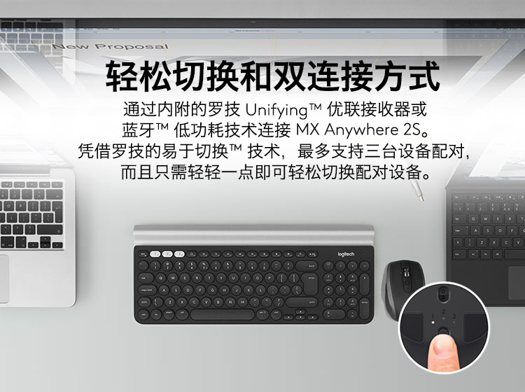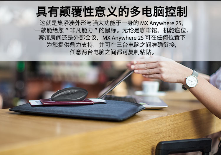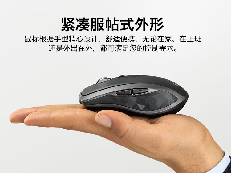 罗技(Logitech)MX Anywhere 2S 鼠标 无线蓝牙鼠标 办公鼠标 右手鼠标 优联 儒雅黑 带无线2.4G接收器