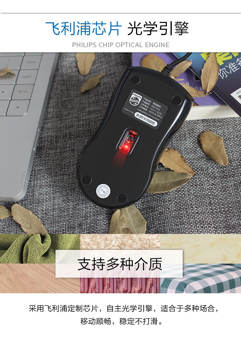 飞利浦(PHILIPS)SPK7101BS 鼠标 有线鼠标 办公鼠标 低音鼠标 人体工学 黑色 1000dpi 十只装
