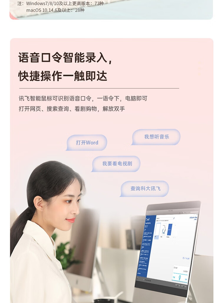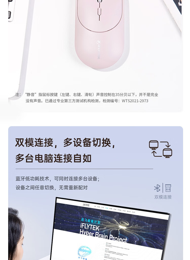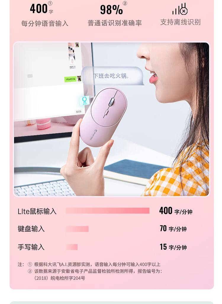 科大讯飞 智能鼠标 LiteM320 办公鼠标 无线外设 轻薄便携 多彩小巧 轻音按键 智能语音输入打字翻译 皎月白