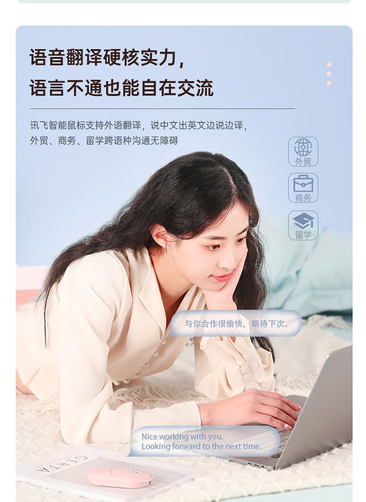 科大讯飞 智能鼠标 LiteM320 办公鼠标 无线外设 轻薄便携 多彩小巧 轻音按键 智能语音输入打字翻译 松霜绿