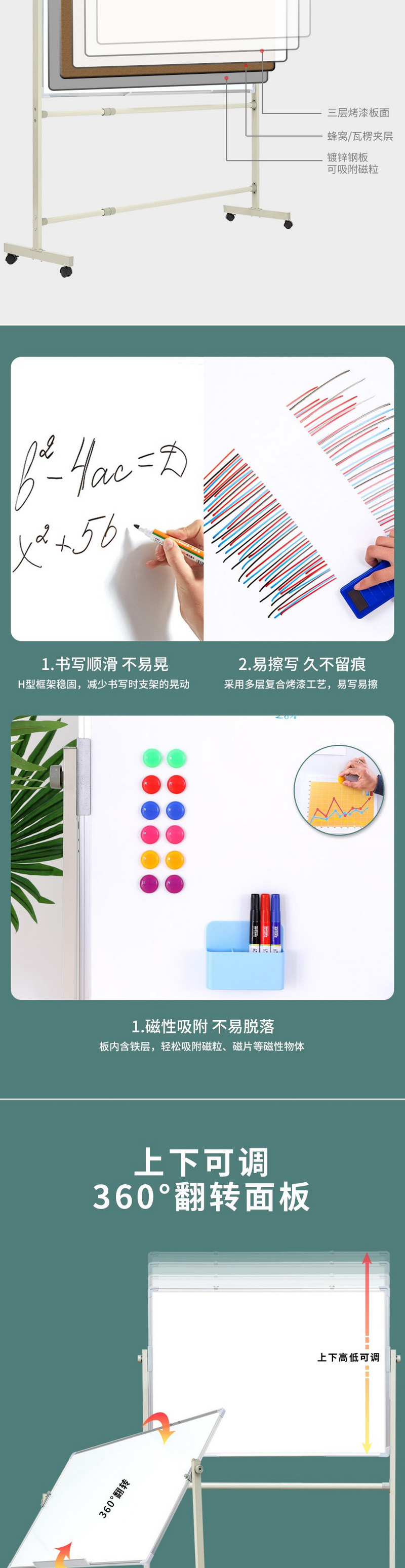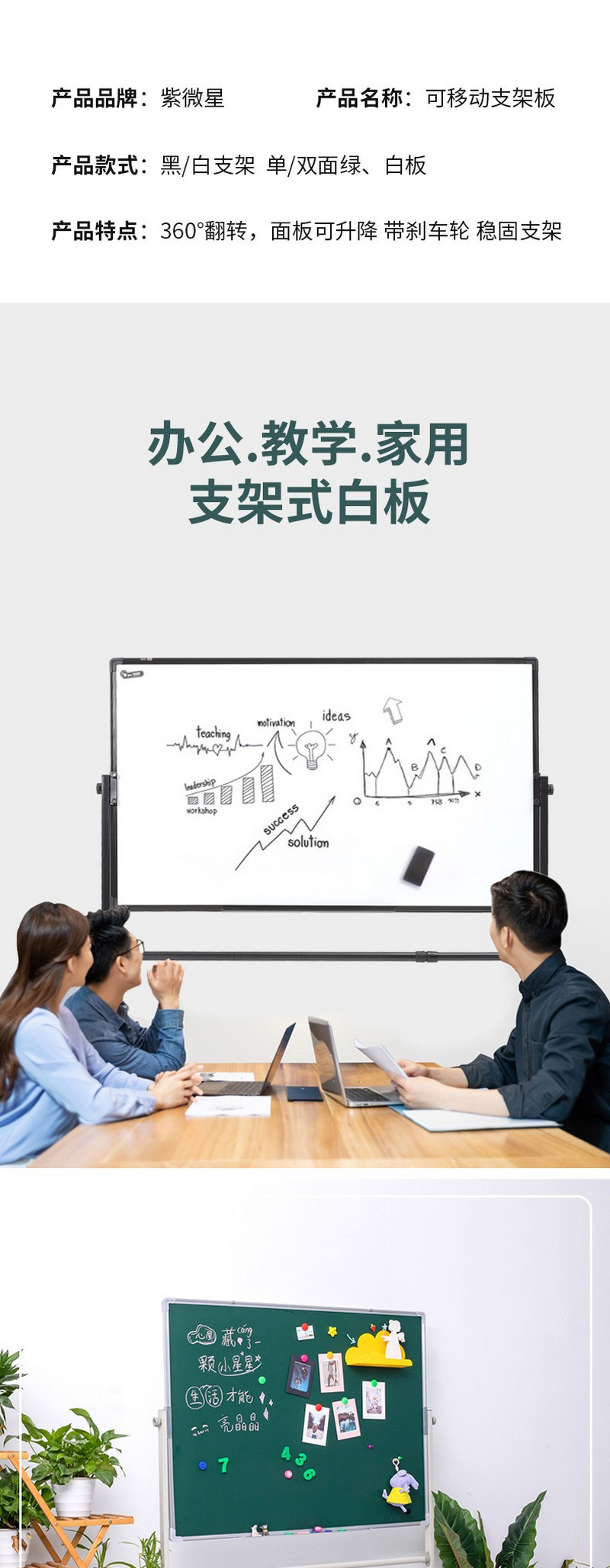 紫薇星(ZIWEISTAR) 白板 写字板 支架式移动黑板架子 商用办公 儿童小白板 家用教学白板 磁性 看板 90*120cm 单面白板+A型黑色支架无轮 折叠款