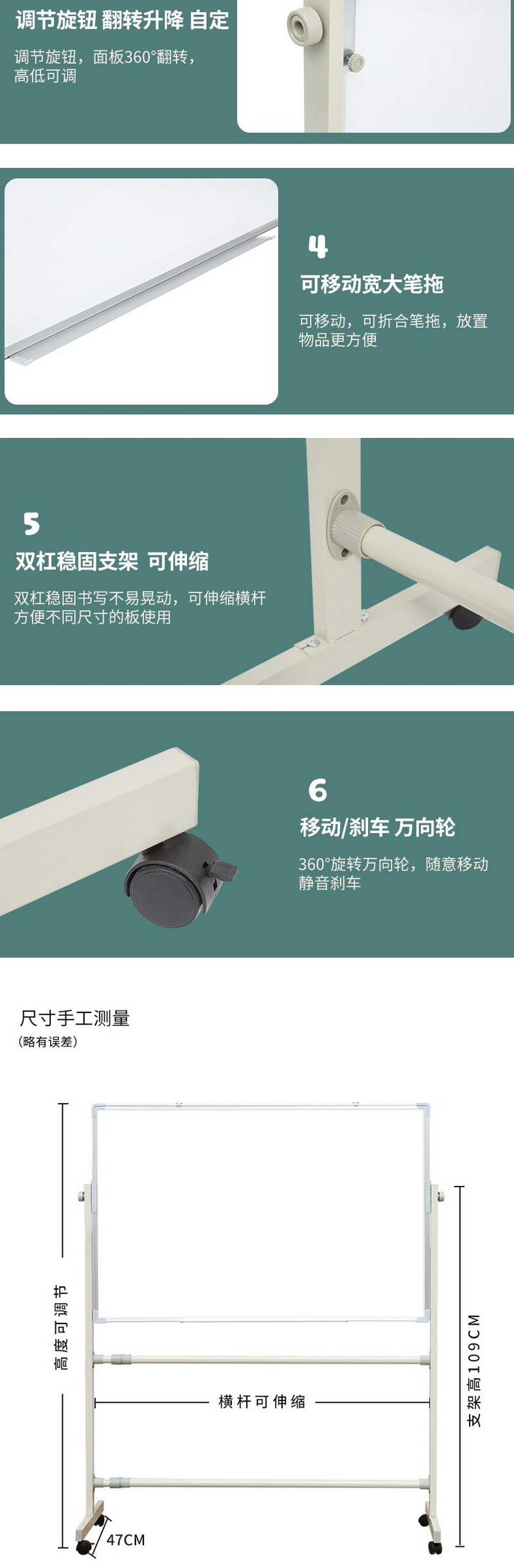 紫薇星(ZIWEISTAR) 白板 写字板 支架式移动黑板架子 商用办公 儿童小白板 家用教学白板 磁性 看板 80*100cm 单面白板+双杠支架 单面款