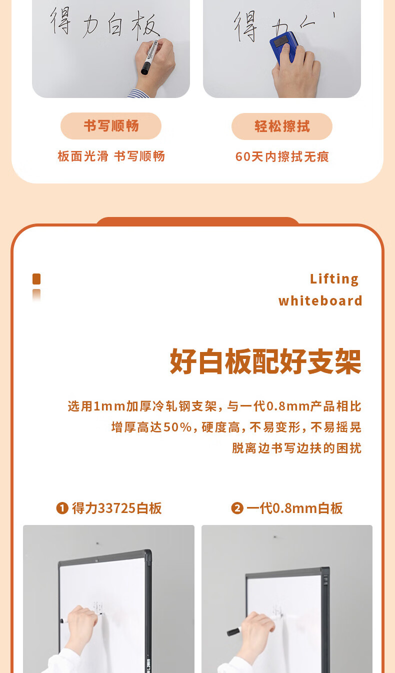 得力(deli) 120*90cm 支架式白板 白板写字板 书写 可移动 升降 教学儿童画板 办公会议白板 黑板 家用写字板 加固 33725
