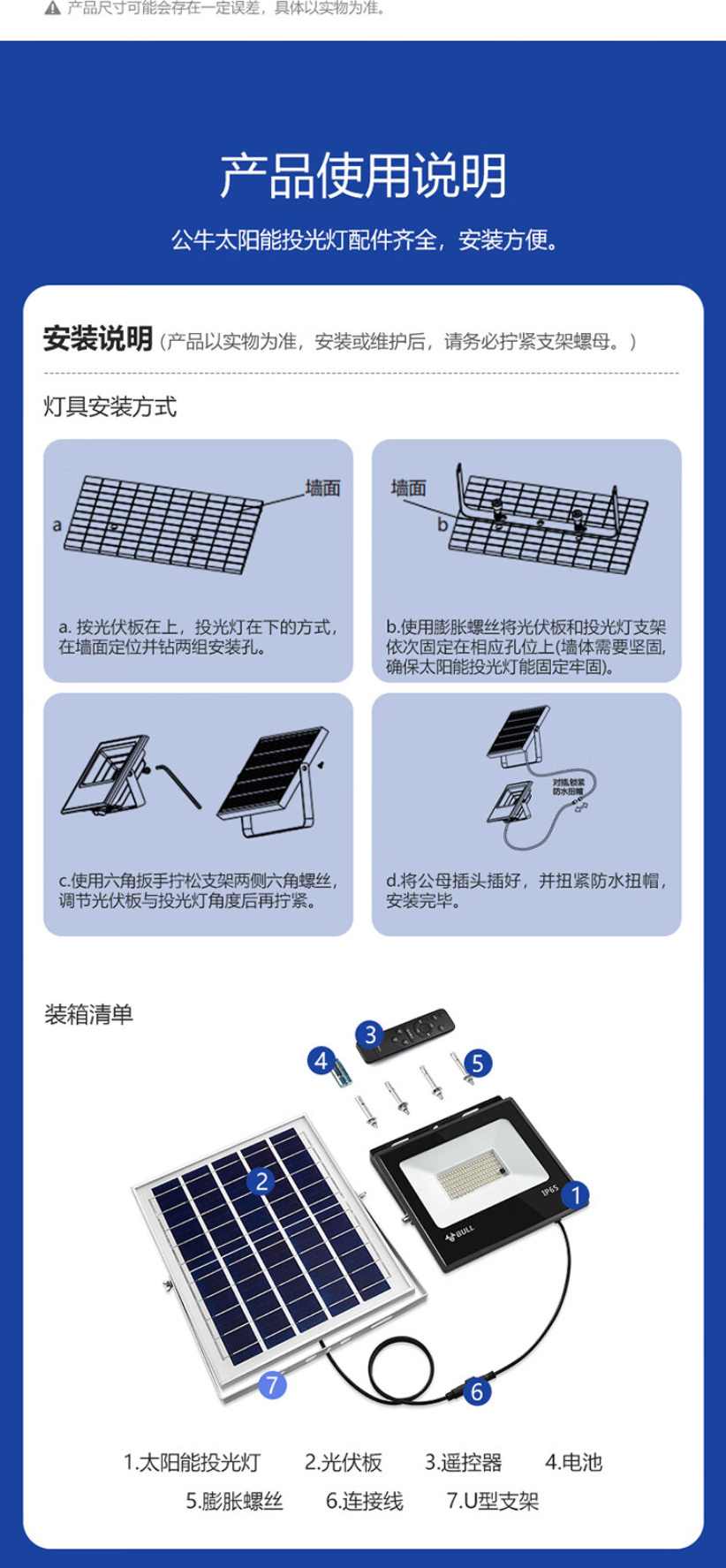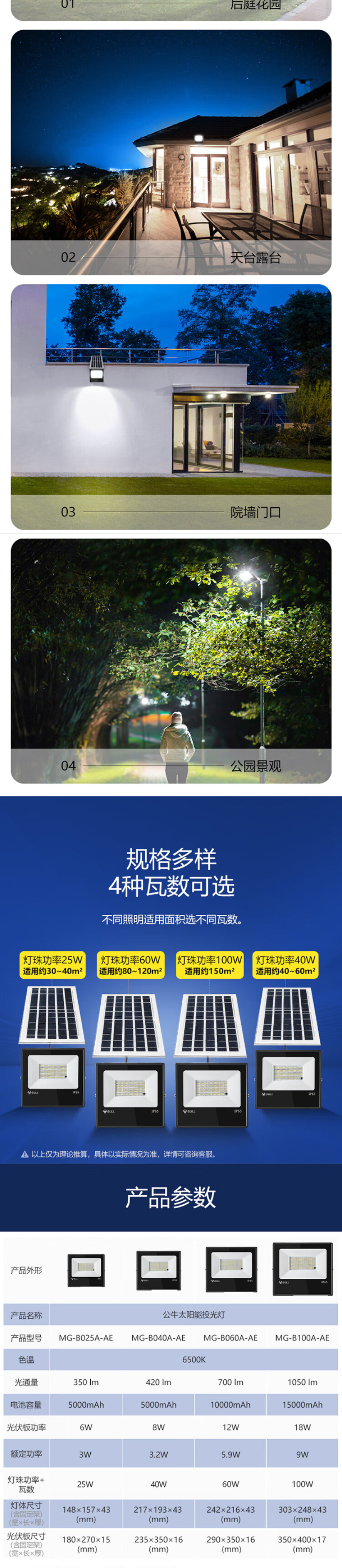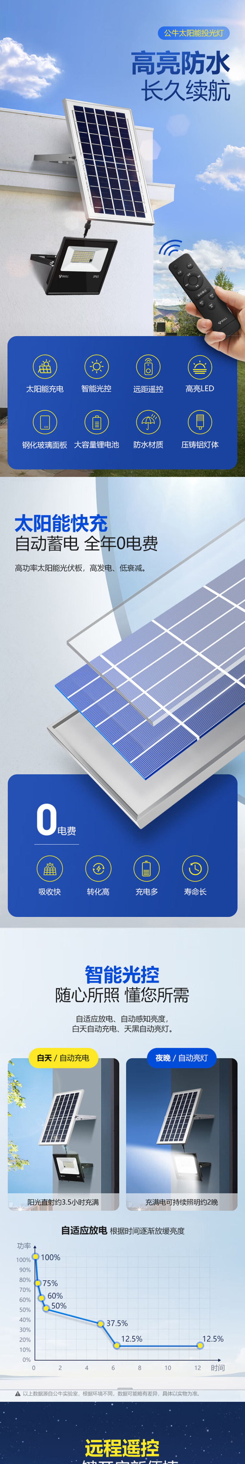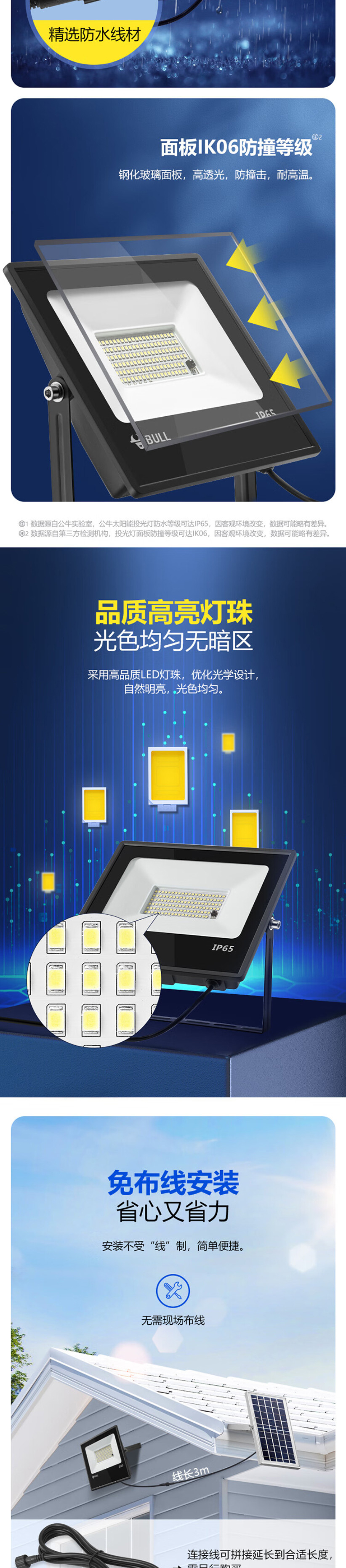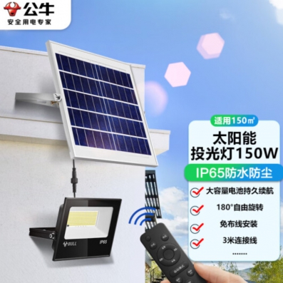公牛(BULL)太阳能灯 户外灯 庭院灯 路灯 钢化玻璃智能光控 远程遥控 150W-3米线 适合150平方米