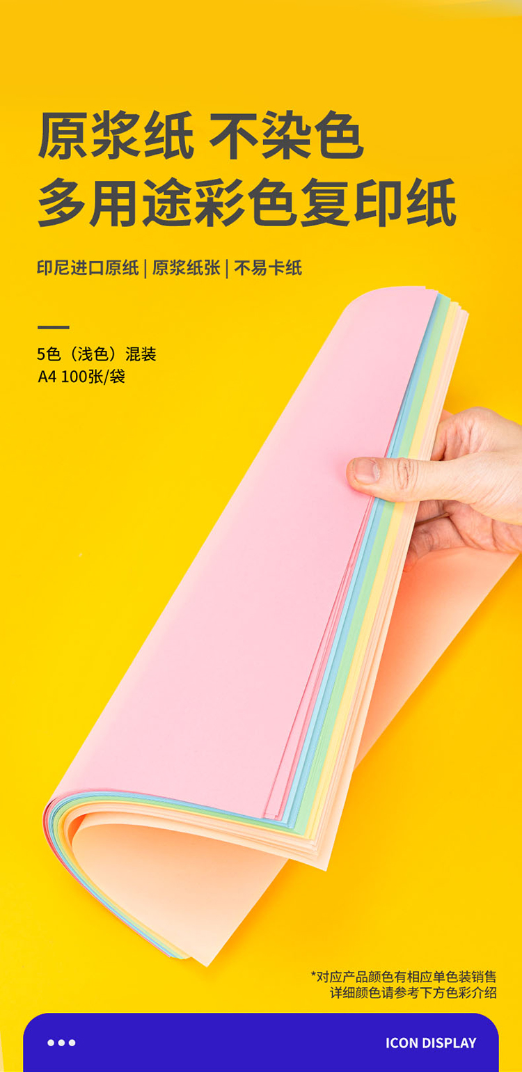 得力(deli)A4 80g 5浅色混装复印纸 100张/包