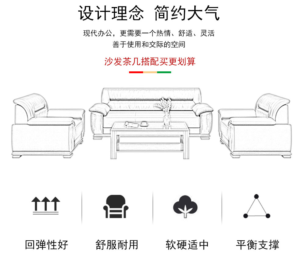接待会客沙发办公室沙发 三人位沙发 1+1+3