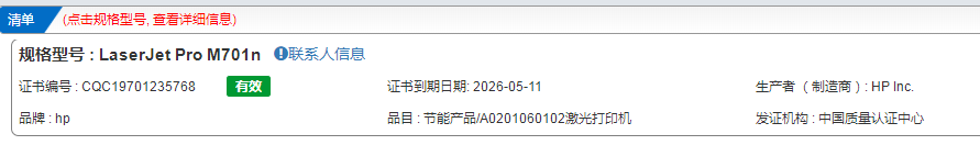 商品品牌:惠普/HP 商品货号:M701n 商品库存:45